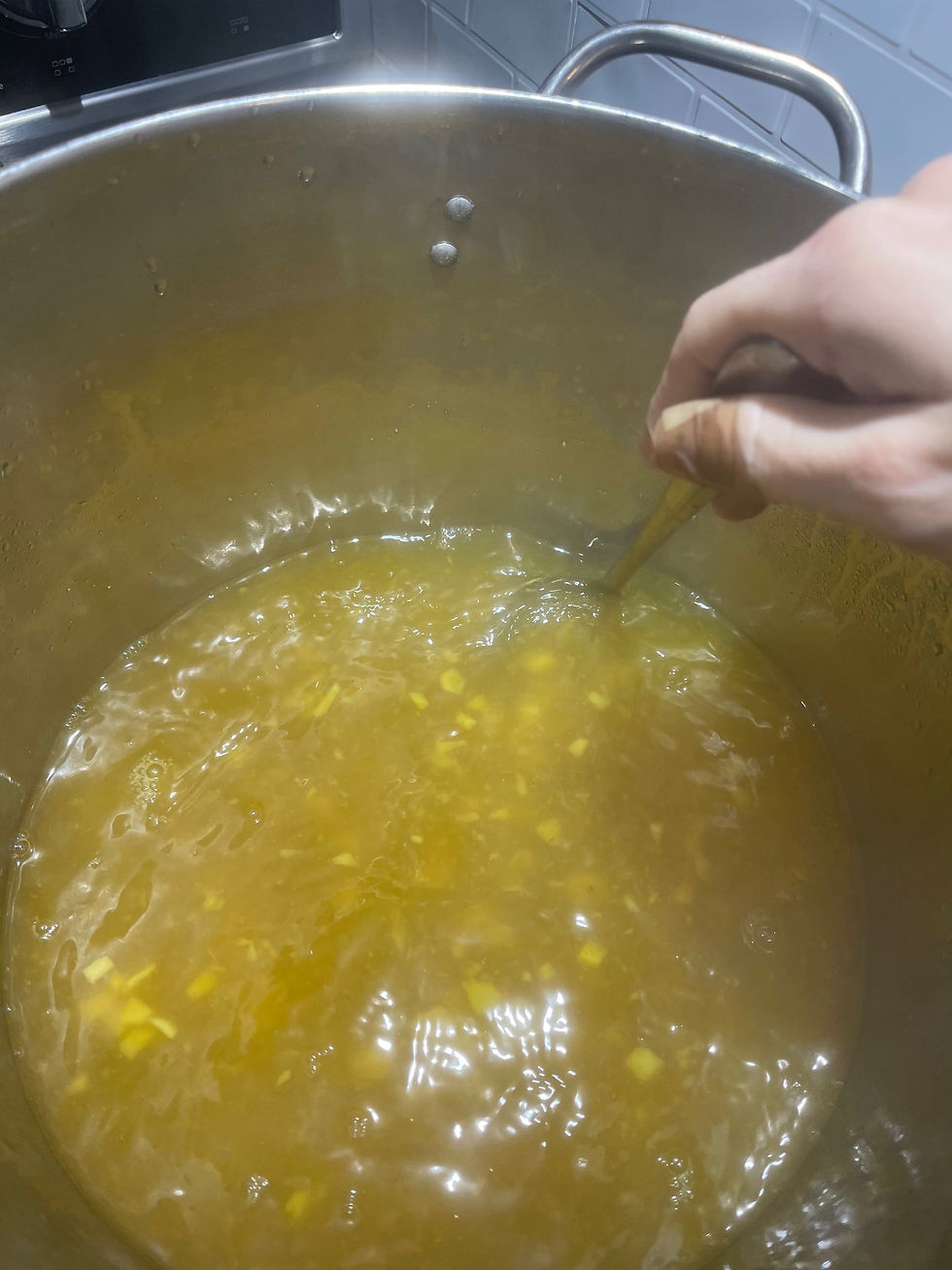 After simmering, remove the saucepan from the heatand let it cool slightly.